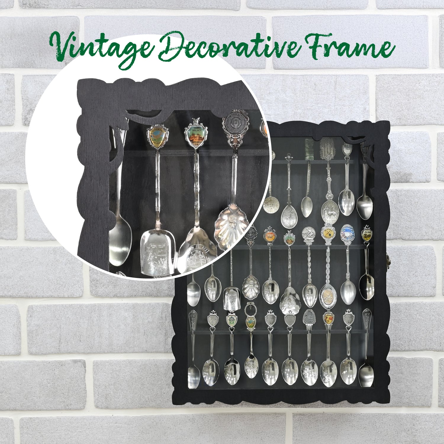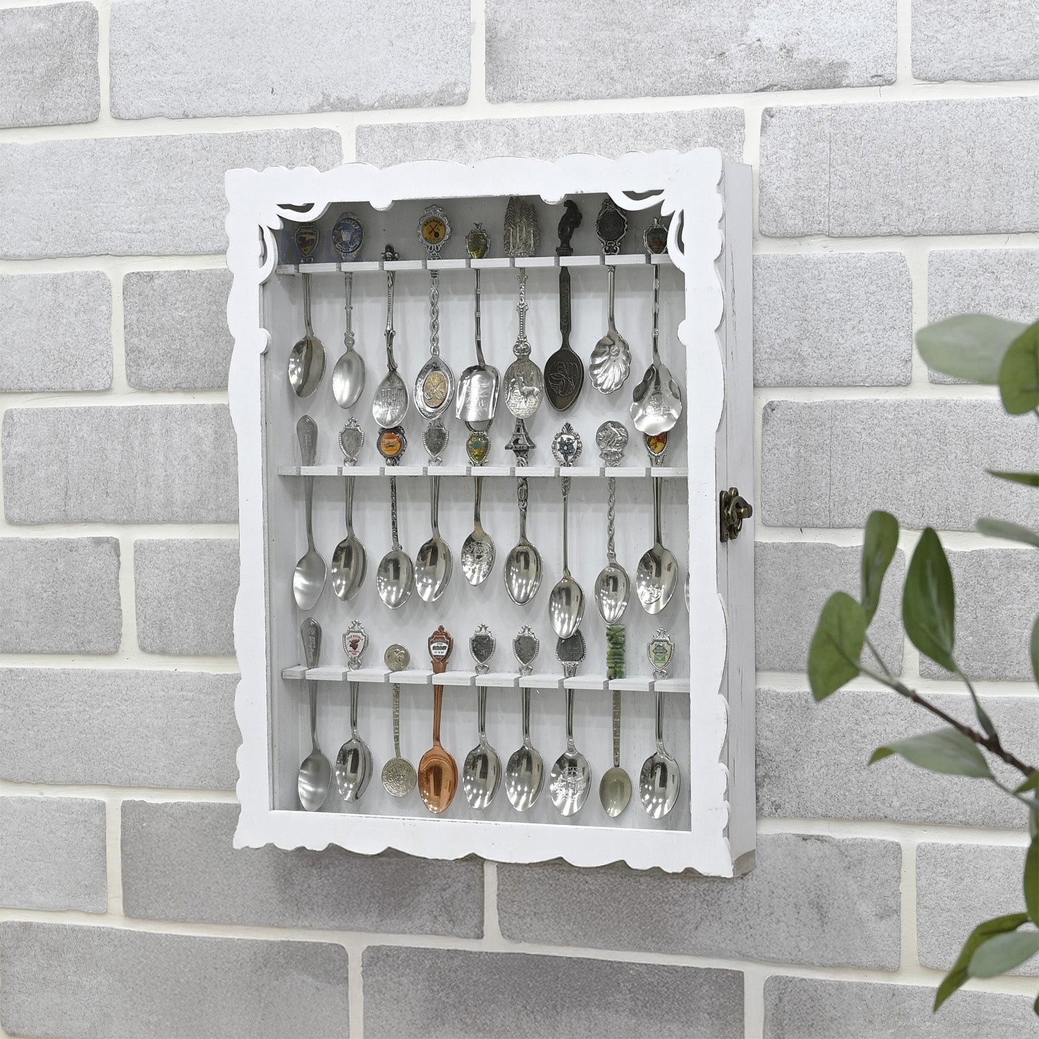 COLLECTION SPOON DISPLAY RACK: Features a tempered glass door with a vintage latch to protect your spoons from dust while adding a touch of sophistication; this display case adds warmth and charm to any decor